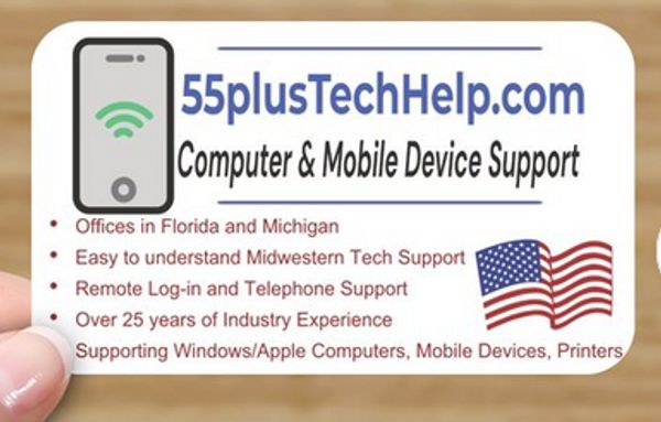 Thank you for reviewing our website. We have been seasonal Daytona Beach Shores residents for over 6 years (Snow Birds). We offer support in Michigan and Florida. We are a registered SunBiz.org business in Florida operating under 55plustechhelp.com LLC. Our primary support areas in Florida Volusia, Lake Counties, Brevard Counties, however we cover all of Florida.